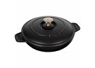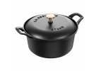 Okrúhly liatinový hrniec so samopokrievkou Staub zo série Cocotte v čiernej farbe. Priemer 30 cm, objem 8,35 l. Na pečenie a varenie. Ideálne na pomalé varenie.