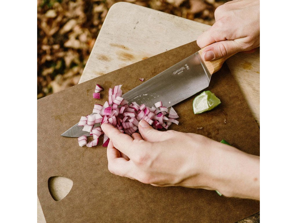 Základný kuchársky nôž Opinel s dĺžkou čepele 20 cm, ktorý by nemal chýbať v žiadnej domácnosti.