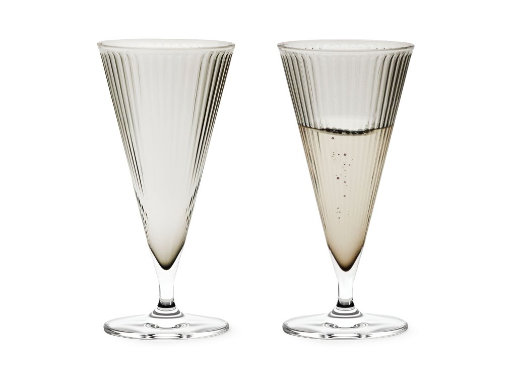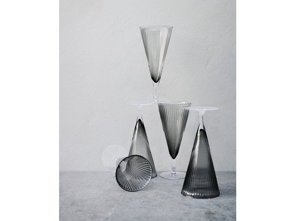 Užite si pohár šumivého vína so svojimi hosťami v krásnych pohároch na šampanské z kolekcie Grand Cru Nouveau. Ručne fúkané poháre v kouřovej farbe vytvárajú atmosféru elegancie a bezstarostného prístupu k životu. Pohár Grand Cru Nouveau na šampanské meria 18 cm na výšku a ostré oko si všimne jasnú referenciu na sochársku, kužeľovú formu uzáveru Rosendahl Grand Cru vo svojom dizajne. Opakujúce sa drážky vytvárajú minimalistický a živý výraz spolu s rafinovanou optickou hrou farieb pri lome svetla v pohári. Drážky sú celým DNA značky Grand Cru a séria Nouveau ich znovu interpretuje a dodáva im moderný nádych. Výsledkom je vzhľad každodennej luxusnej funkčnej elegancie.