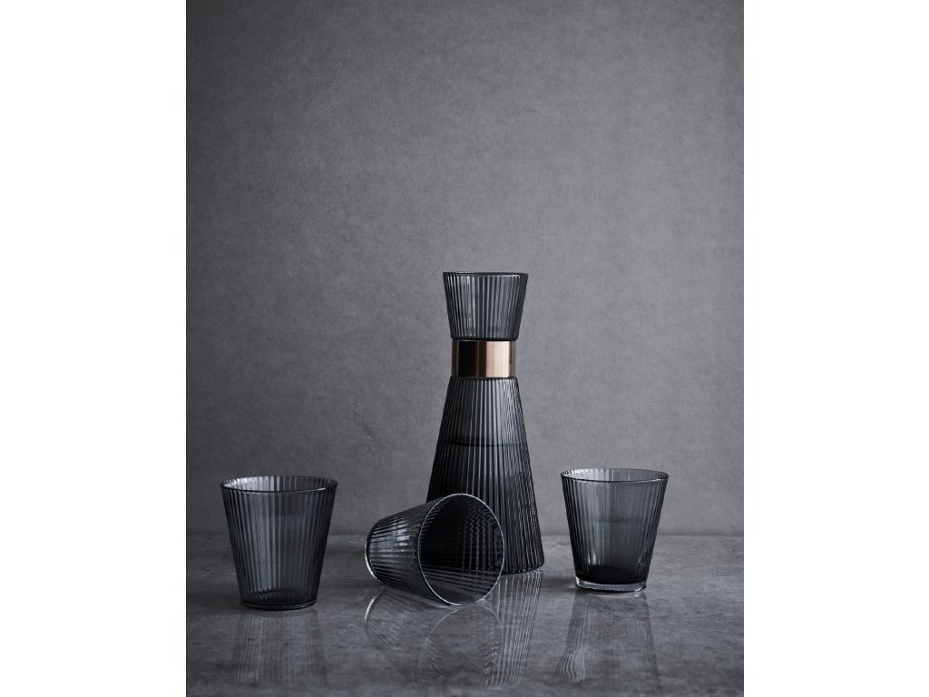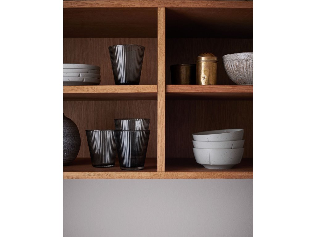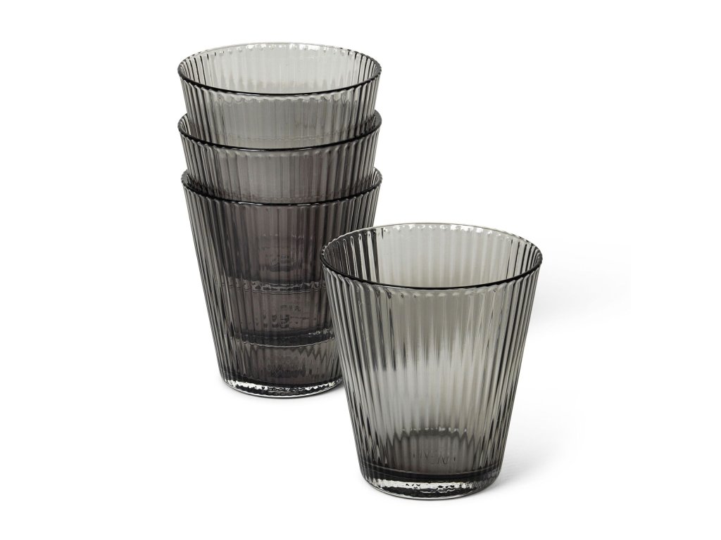Podávajte ľadovo vychladenú osviežujúcu vodu v elegantných a funkčných pohároch dymovej farby. Opakujúce sa jemné vrúbkovanie zdobí povrch pohárov a vytvára rafinovanú optickú hru pri lome svetla. Elegantný príklad funkčného, stohovateľného skla pre moderné bývanie. Poháre s objemom 260 ml je možné umývať v umývačke riadu – program na sklo do 55°C.