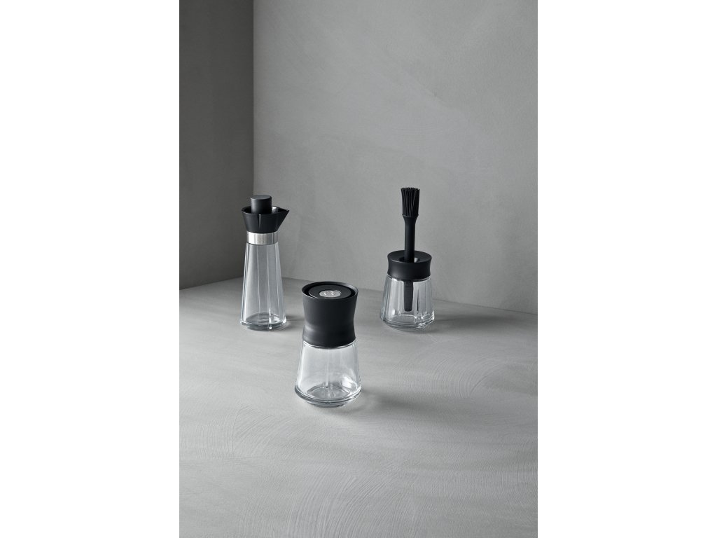 Táto praktická sklenená dóza je ideálna ako na olej, tak na ocot a umožňuje rýchle a jednoduché dávkovanie pri príprave šalátov alebo pri varení. Praktická nálevka je zasunutá do fľaše a spätný tok uzáveru zabezpečuje, že obsah po dóze nekvapká ani nesteká. Dóza na olej a ocot Grand Cru je navrhnutá tak, aby dokonale ladila s mlynčekmi na soľ a korenie z rovnakej kolekcie a štýlovo doplnila klasickú sadu riadu pri stolovaní alebo na kuchynskej linke.