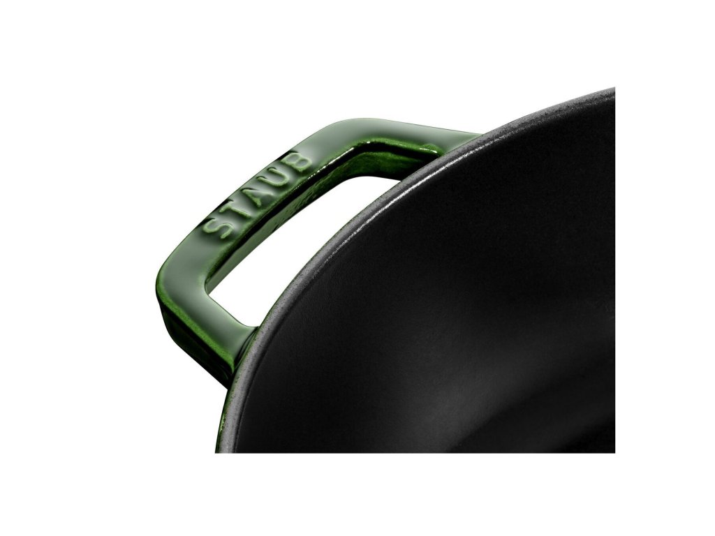 Malé inovatívne hroty pod vekom zaisťujú plynulú cirkuláciu a vytvárajú ideálny podmienky na pomalé varenie, ideálne na dusenie, pečenie, zapekanie a vyprážanie. Kondenzovaná para sa rovnomerne vracia do hrnca, takže pripravovaný pokrm sa automaticky opečie, čím sa zabráni jeho vysušeniu počas varenia a pečenia. Poprední šéfkuchári milujú liaty riad Staub pre jeho schopnosť udržať teplo, zvýrazniť chuť a byť prakticky nerozbitný.