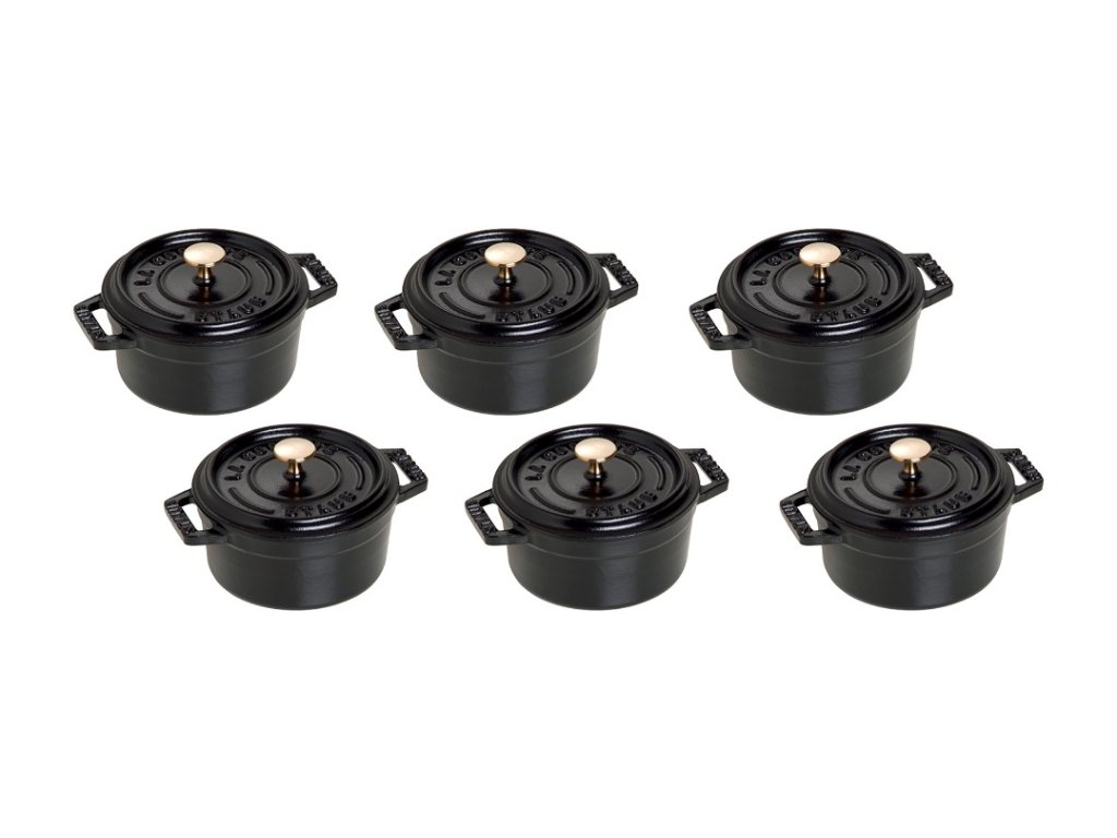Staub Cocotte Sada 6 kusov mini hrncov okrúhlych 10 cm/0,25 l čierna, 19501025