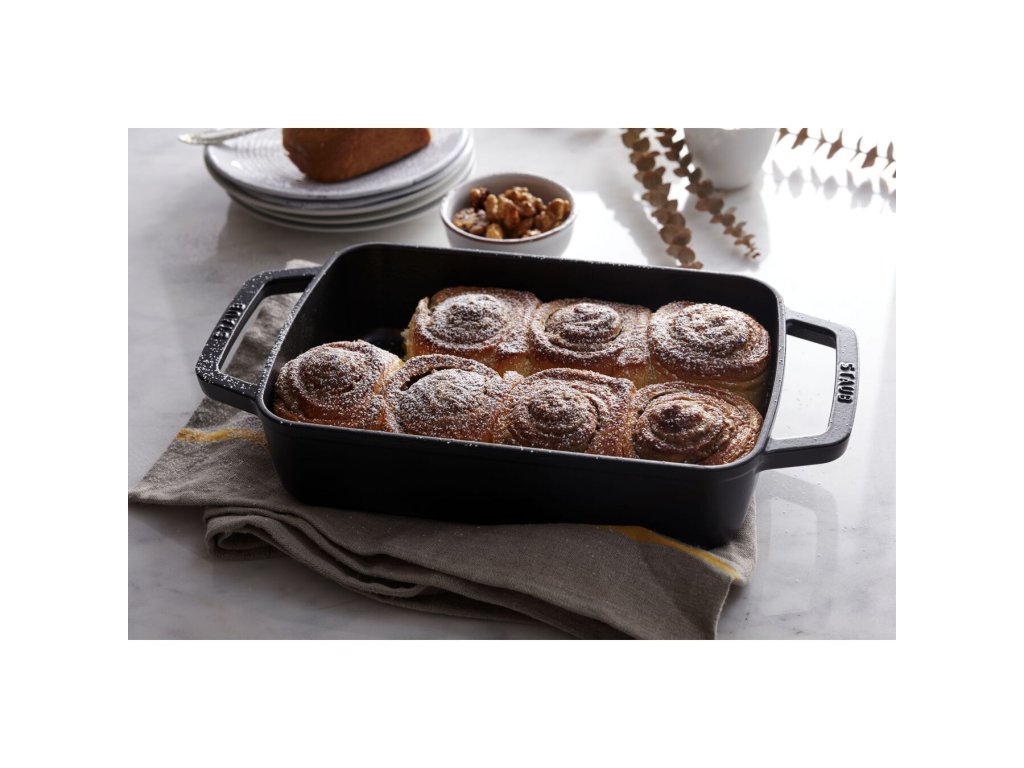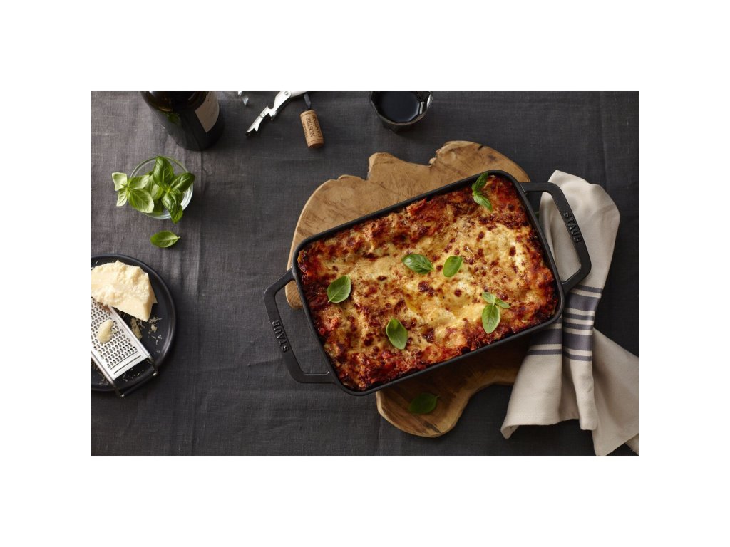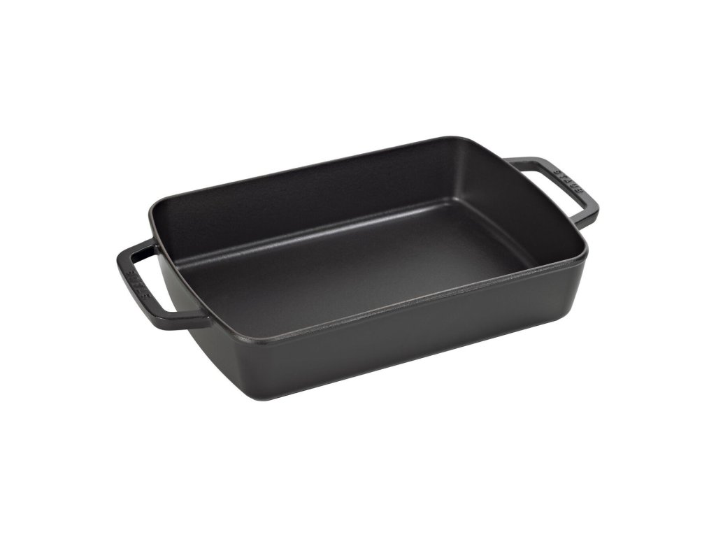 Obdĺžnikový liatinový pekáč je vhodný na všetky druhy pečenia, ako aj na varenie a vyprážanie. Veľké rukoväte na pohodlné servírovanie. Zapekacia misa je vyrobená z jemnej smaltovanej liatiny, ktorú šéfkuchári oceňujú najmä pre jej rovnomerné rozloženie tepla. Existuje mnoho faktorov, vďaka ktorým je pekáč Staub fenomenálnym pomocníkom šéfkuchára.