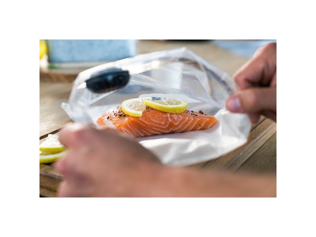 Veľké vákuové vrecká naopakované použitie z odolného plastu bez obsahu BPA. Všestranné vákuové vrecká možno použiť na uskladnenie všetkých druhov potravín v chladničke, mrazničke a špajzi. Sú dokonale tesné a odolávajú teplotám až do 100 °C, takže ich môžete použiť na varenie metódou sous-vide.